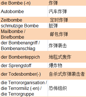 有关恐怖袭击的德语词汇和表达