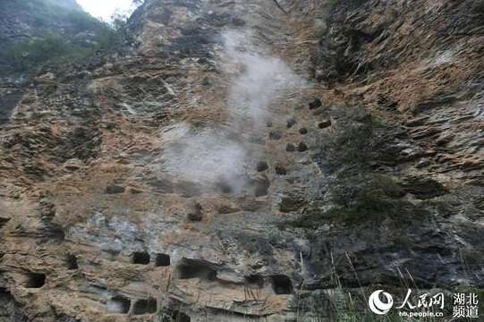 Eine große Gruppe von hängenden Särgen wurde in der zentralchinesischen Provinz Hubei gefunden. Die Holzsärge befinden sich auf halber Höhe zwischen den Felsen in künstlichen Höhlen und sollen über tausend Jahre alt sein.