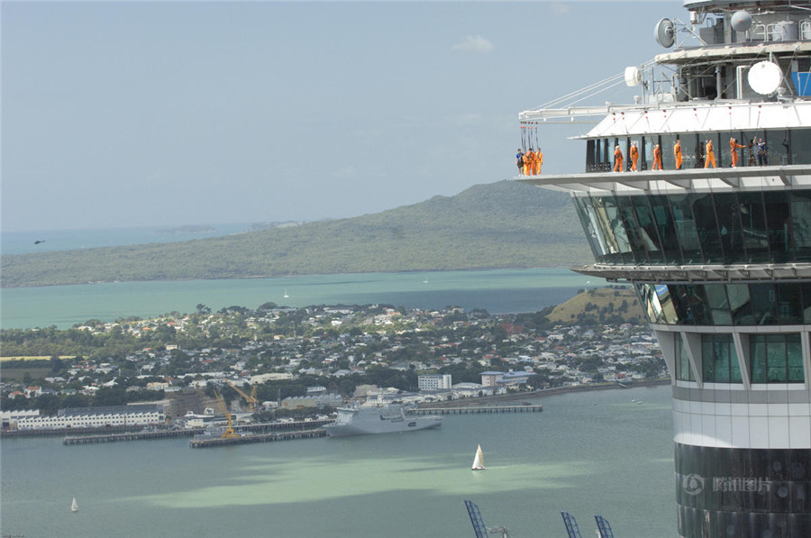 Am 328 Meter hohen „Sky Tower“ wird auch ein solches Programm für Leute mit starken Nerven angeboten.