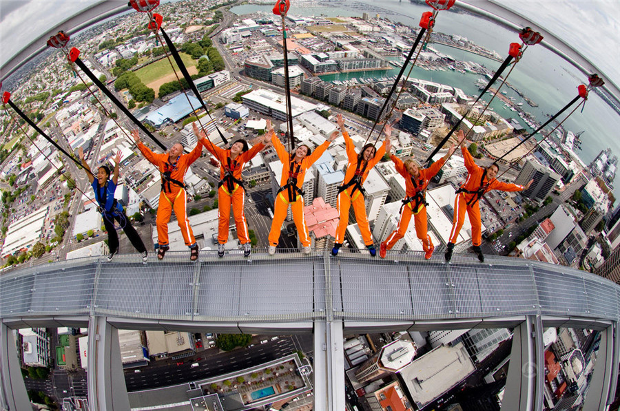 Am 328 Meter hohen „Sky Tower“ wird auch ein solches Programm für Leute mit starken Nerven angeboten.