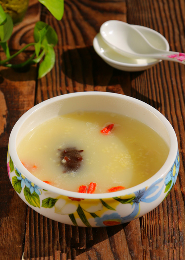 Die Abalone- und Kolbenhirsesuppe hat einen hohen Eisweißanteil, wenig Fett und fast kein Cholesterin. Sie ist lecker und gesund. Durch häufigen Verzehr können die Abwehrkräfte gestärkt und Müdigkeit gelindert werden. Sie ist eine wertvolle, gesundheitsfördernde Mahlzeit im Winter.