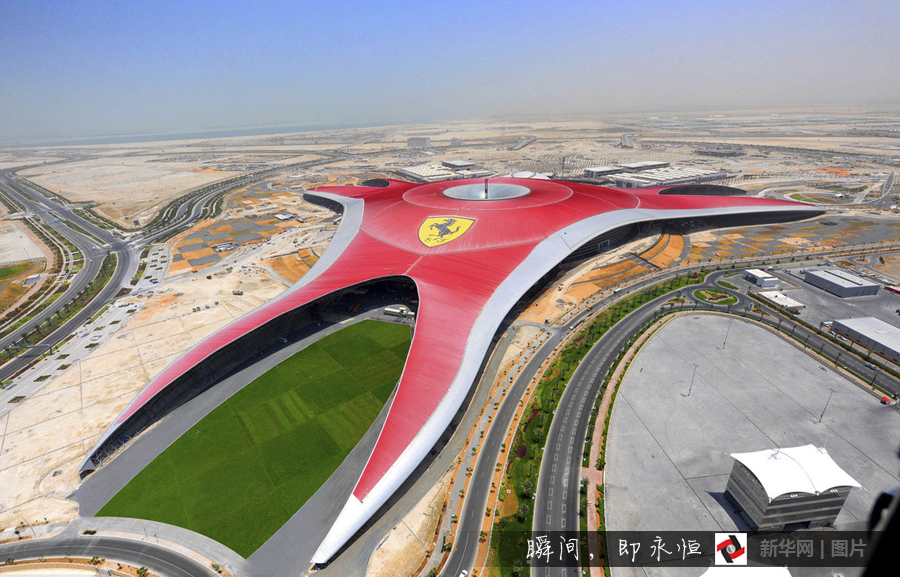Der Freizeitpark Ferrari World in Abu Dhabi. Der Park ist berühmt für Formula Rossa, die schnellste Achterbahn der Welt.