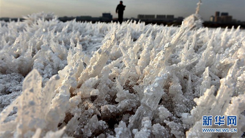 Mirabilit-Kristalle auf dem chinesischen „Toten Meer“