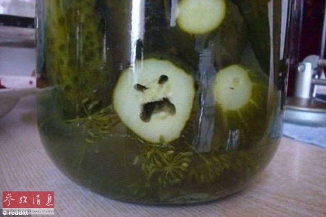 Die eingelegte Salzgurke sieht aus wie ein Häftling, der aus dem Gefängnis ausbrechen will.