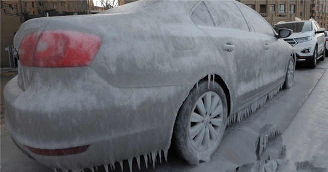 Ein Bürger in Harbin schüttet heißes Wasser in die Luft. Das Wasser verdampft und gefriert sofort zu Eis. Die Temperaturen in Nordostchina lagen in der vergangenen Woche bei weniger als minus 30 Grad. (Foto vom 21. Februar 2016)