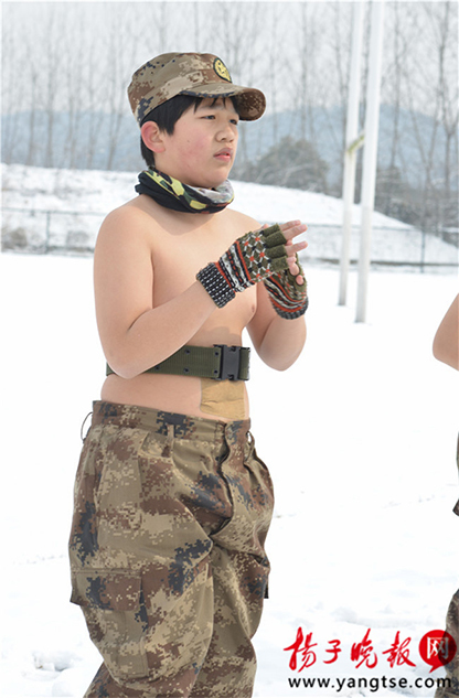 Hes Sohn, der wegen seiner vorherigen Läufe bei knapper Bekleidung als "Nacktlauf-Junge" bezeichnet wird, zitterte vor Kälte, nachdem er ohne Oberkleidung eine Runde gelaufen ist. Aber er will vor den anderen Kindern ein Vorbild sein.