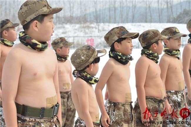 Kinder unterziehen sich am 1. Februar 2016 einem Training auf einem schneebedeckten Spielplatz in einem Winterlager in der Stadt Nanjing, der Hauptstadt der ostchinesischen Provinz Jiangsu. Dabei dürfen sie keine Oberbekleidung tragen.