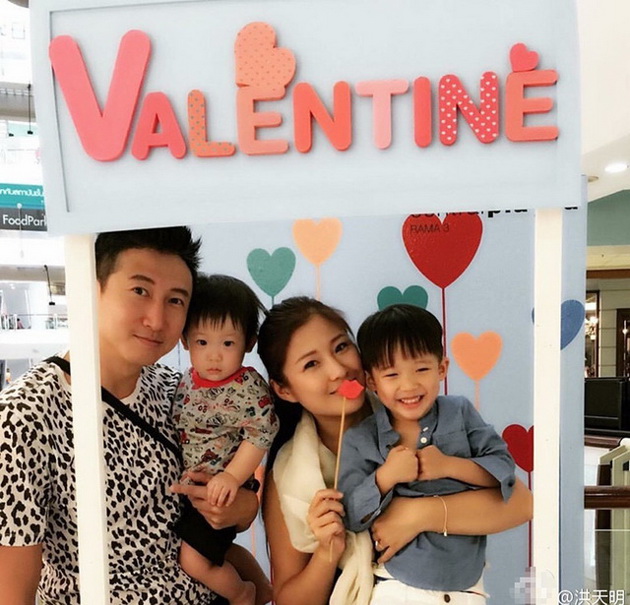 Der Hongkonger Schauspieler Hung Tin Ming mit seiner Familie.