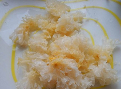 1. Das Silberohr zunächst in Wasser einweichen. Dann in kleine Stücke schneiden.