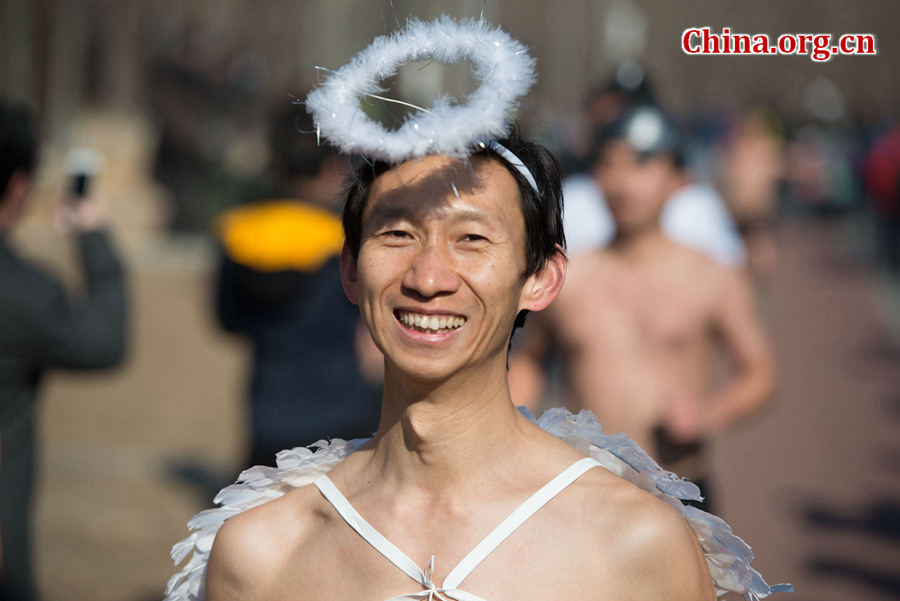 "Undie Run" in Beijing: halbnackte Läufer in lustigen Outfits
