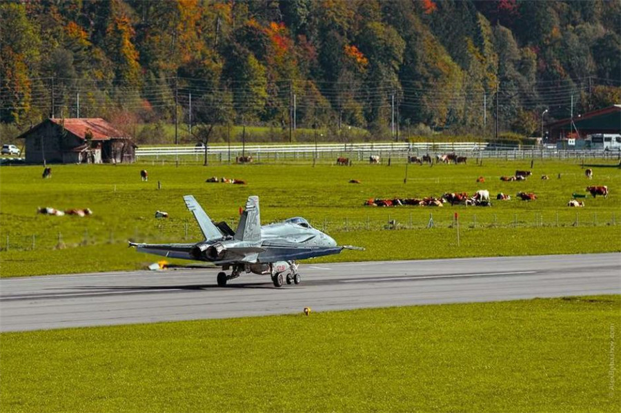 Abflug vom schweizerischen Militärflugplatz Meiringen