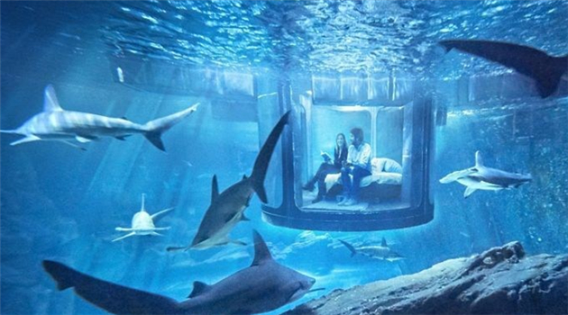Ab April kann man in Paris etwas Ungewöhnliches erleben: Übernachten unter Wasser mit 35 Haien! Das Aquarium De Paris hat ein Glaszimmer inmitten eines Haifisch-Aquariums gebaut – in zehn Metern Tiefe unter dem Wasser. Hier kann man die 35 Haie aus nächster Nähe beobachten. Eine Online-Reservierung ist für die Öffentlichkeit eingerichtet worden.