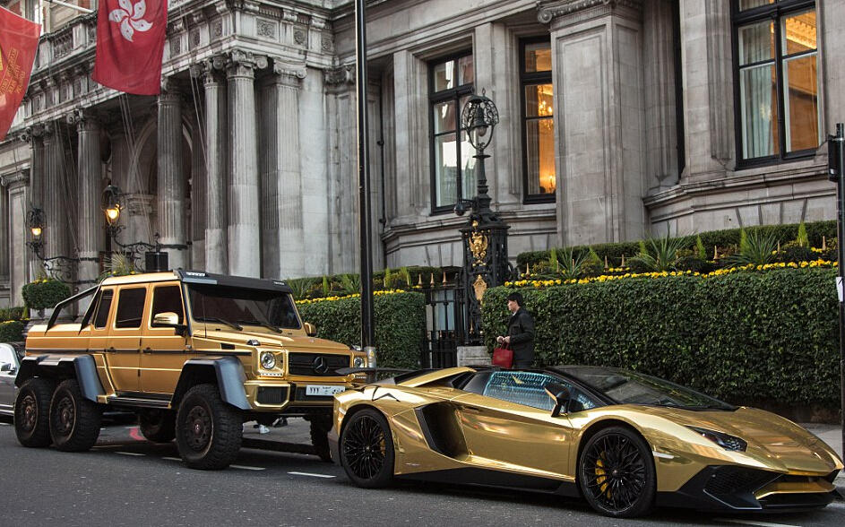 Luxussportwagen,London,Saudi Arabien,Mercedes G63 AMG 6x6,Rolls-Royce Phantom Coupe ,Lamborghini Aventador SV ,Goldlackierung,Luxusautos