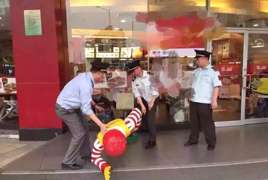 Die lebensgroße Figur wurde Berichten zufolge von einem Gehweg vor einer McDonald’s-Filiale in der Longzhu-Straße im Stadtbezirk Huadu in Guangzhou entfernt. Die Ordnungsbeamten brachen die Statue an ihrer Basis ab, als sie sie abrissen und ließen nur die großen Clownsfüße stehen. Fotos der Aktion verbreiteten sich im Internet wie ein Lauffeuer.