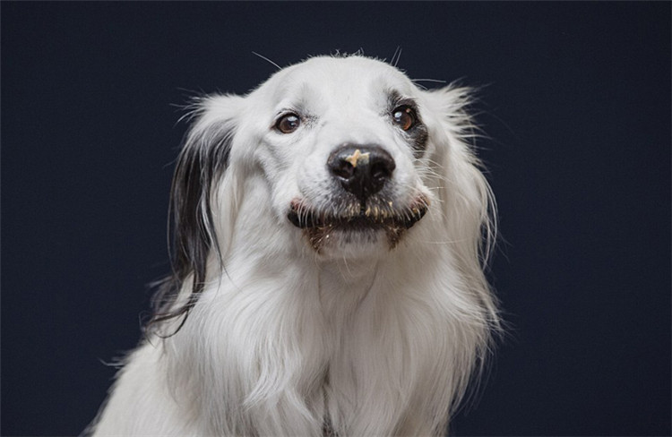 Mitunter sind Hunde zu einer imposanten Mimik fähig, insbesondere dann, wenn sie ihren Lieblingsleckerbissen Erdnusspaste genießen.