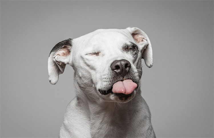 Mitunter sind Hunde zu einer imposanten Mimik fähig, insbesondere dann, wenn sie ihren Lieblingsleckerbissen Erdnusspaste genießen.