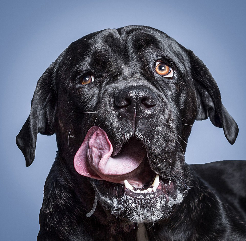 Mitunter sind Hunde zu einer imposanten Mimik fähig, insbesondere dann, wenn sie ihren Lieblingsleckerbissen Erdnusspaste genießen.