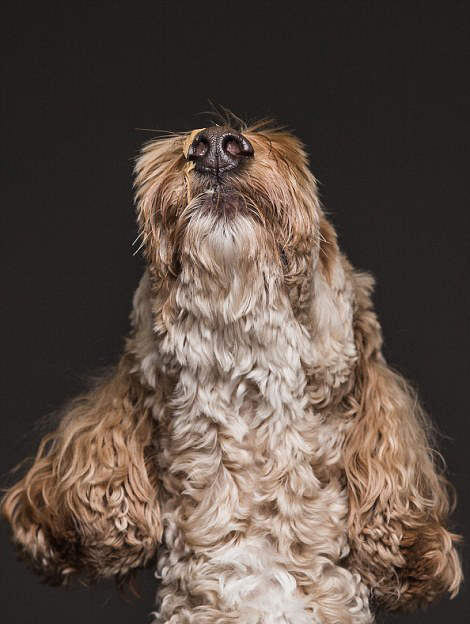 Mitunter sind Hunde zu einer imposanten Mimik fähig, insbesondere dann, wenn sie ihren Lieblingsleckerbissen Erdnusspaste genießen.