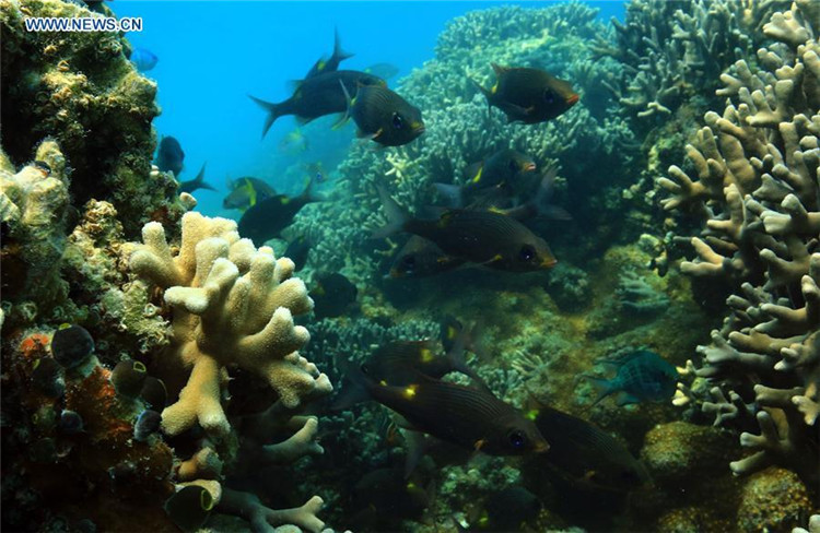 Das Unterwasser-Foto vom 30. April 2016 zeigt Fische und Korallenriffe im Meer nahe der Stadt Sansha in der südchinesischen Provinz Hainan.