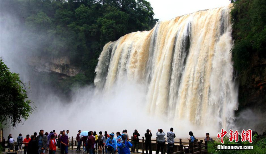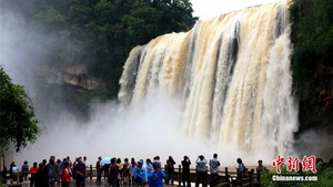 Der Huangguoshu-Wasserfall in der südwestchinesischen Provinz Guizhou ist eine sehr bekannte und beliebte Sehenswürdigkeit Chinas. Sein Wasserdurchfluss erreichte am Montag das höchste Niveau seit zehn Jahren mit 88 Kubikmetern pro Sekunde. Das majestätische und wunderschöne Schauspiel zog die Aufmerksamkeit zahlreicher Besucher auf sich.