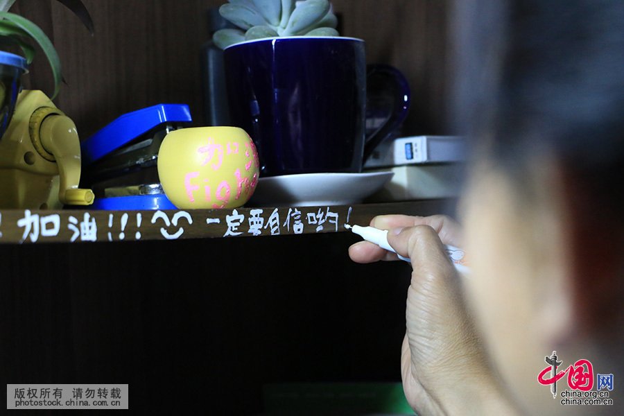 „Gib Gas! Du musst an Dich glauben“, schreibt Zhang auf den Schrank ihrer Tochter, um sie zu ermutigen.