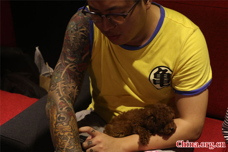 Der Tattoo-Liebhaber Zhu Zhuo zeigt dem Reporter eine Tätowierung, die mehr als 50 Stunden dauerte.