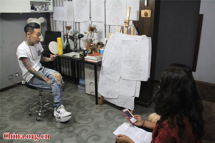 Ein Reporter von China.org.cn interviewt Nie Chaoheng, Tätowierer und Shop-Betreiber.