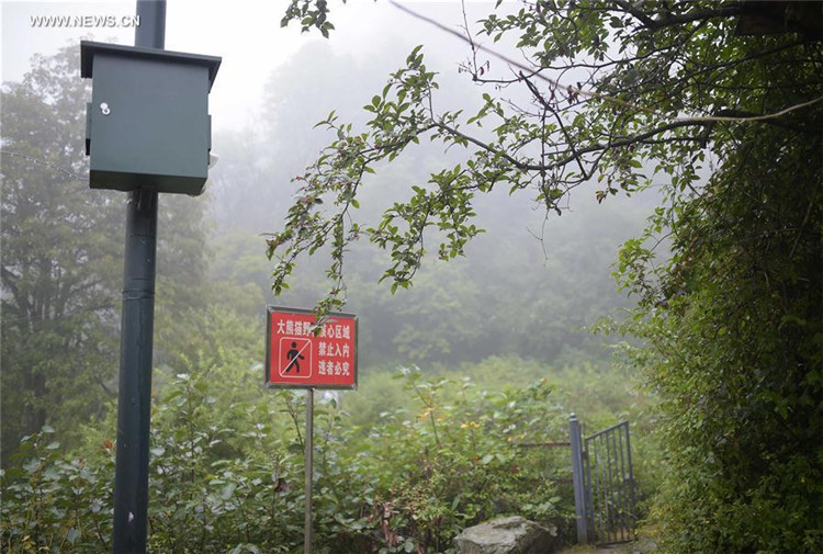 Der Eingang des Wildnis-Trainingsgebiets des Wolong Tiantai Mountain für Riesenpandas in der südwestchinesischen Provinz Sichuan.