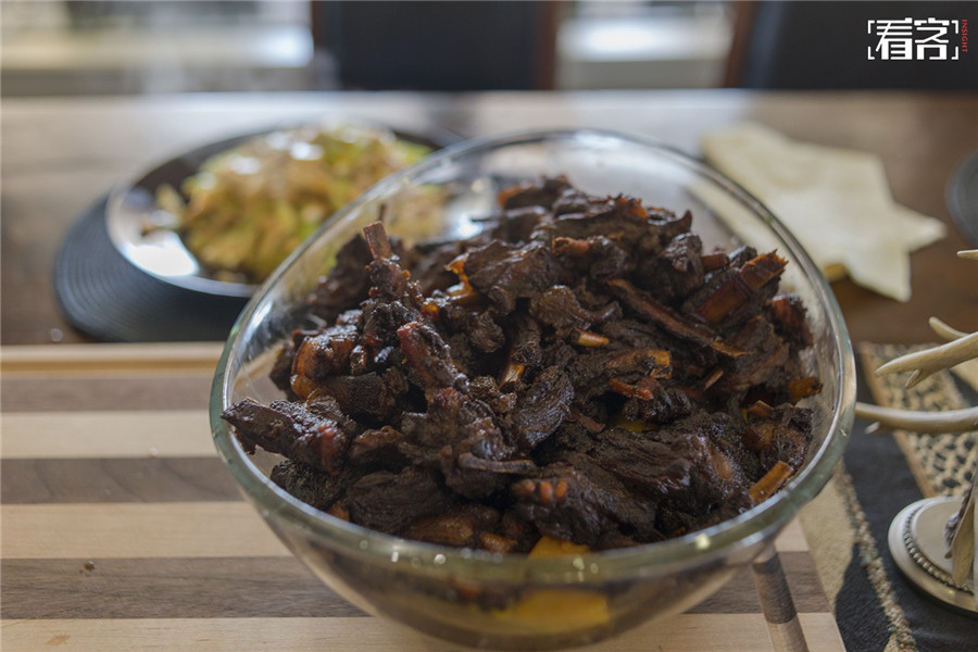 Das Gericht auf dem Tisch besteht aus zwei Wildschweinen, die von einer Gruppe chinesischer Touristen erlegt wurden.
