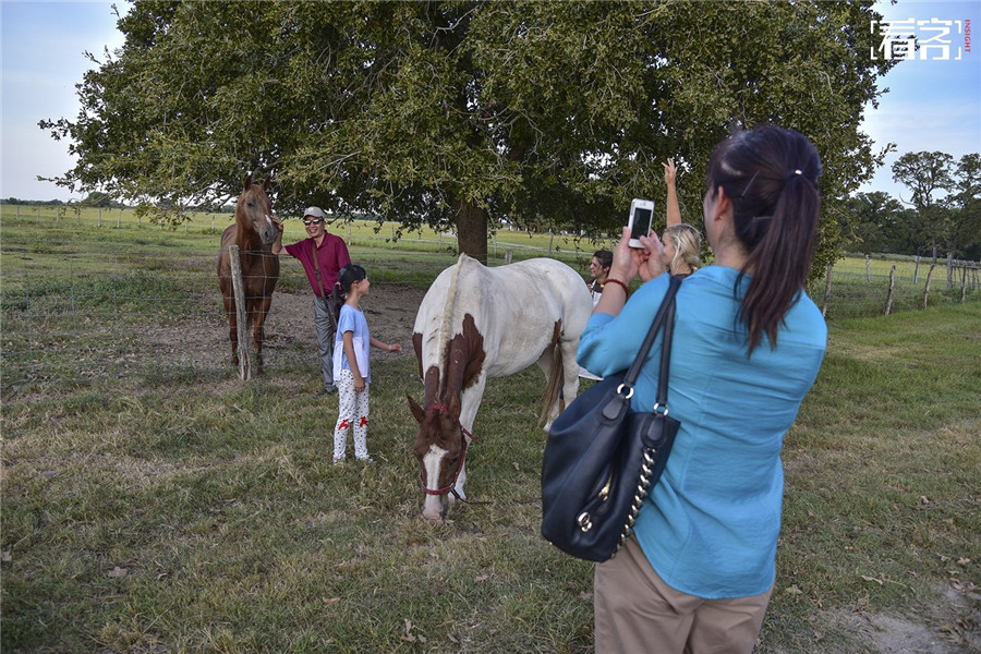 Auf dem privaten Bauernhof eines Abgeordneten fotografieren chinesische Touristen die Pferde. Viele chinesische Familien bringt ihre Kinder zur Jagdreise mit, damit diese die amerikanische Kultur kennenlernen können.