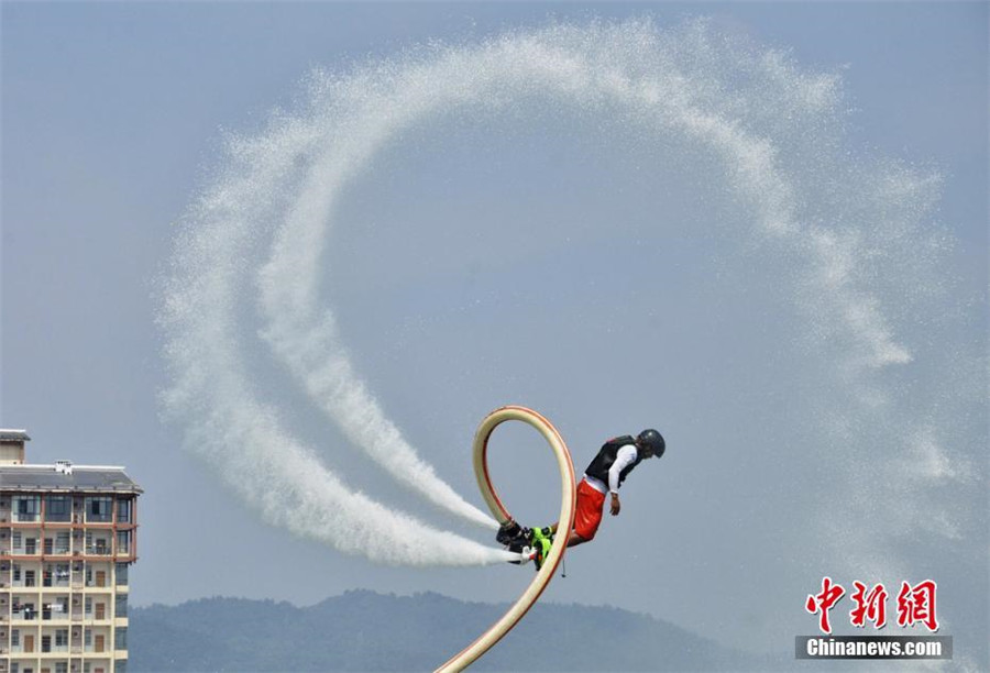Am Montag ist das internationale Tourismusfestival am Baofeng-See in Zhangjiajie in der südchinesischen Provinz Hunan eröffnet worden. Am gleichen Tag begann auch der Flyboard-Wettbewerb am Lishui-Fluss.