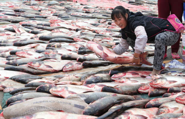 Große Fische, die aus dem Dianchi-See gefangen wurden.