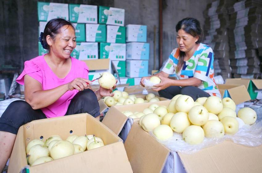 Dörfer pflücken Birnen im Kreis Raoyang in der Provinz Hebei (Foto vom 10. August 2016).