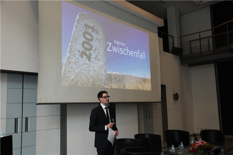 Finn Mayer-Kuckuk, Korrespondent der „Berliner Zeitung“ präsentierte ein paar Informationen zu den Entwicklungen in China seit Beginn von „Sprache und Praxis“. ©DAAD Außenstelle Beijing