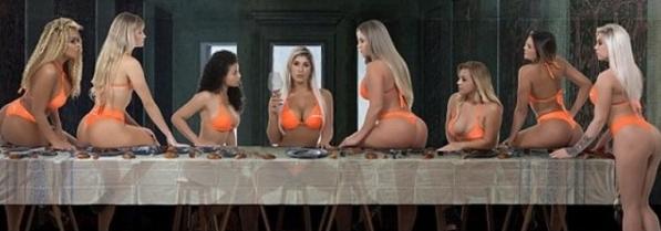 Vor einigen Tagen hat der brasilianische Wettbewerb für den schönsten Po „Miss Bumbum“ ein Werbeplakat veröffentlicht, das zu einer heftigen Kontroverse geführt hat. Das Foto ahmt Leonardo da Vincis berühmtes Wandgemälde „Das Abendmahl“ nach – Jesus und seine Aposteln werden jedoch von erotischen Frauen in orangen Bikinis ersetzt, die ihr Hinterteil stolz präsentieren.