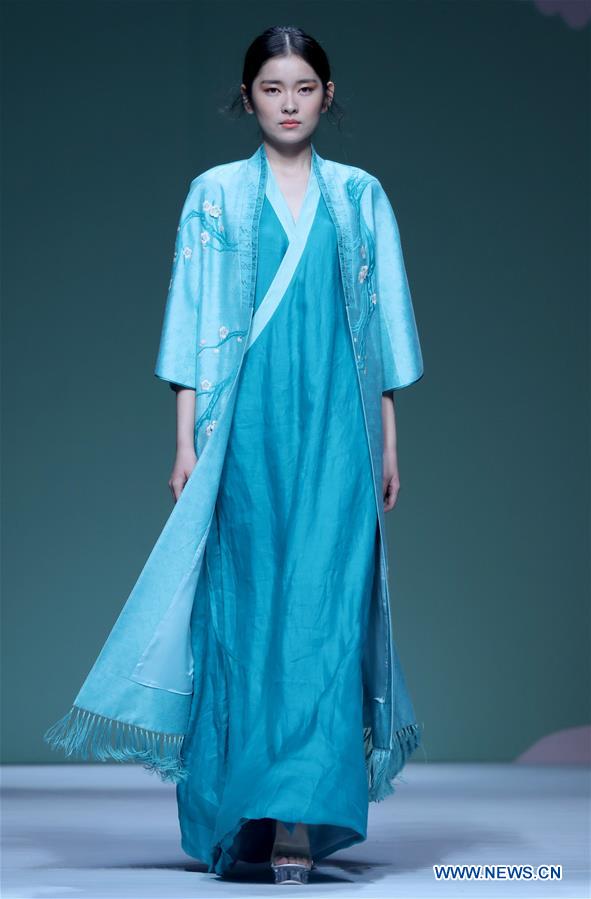 Ein Model präsentiert auf der China Modewoche eine Kreation, die von Chu Yan entworfen wurde (Foto vom 26. Oktober 2016).