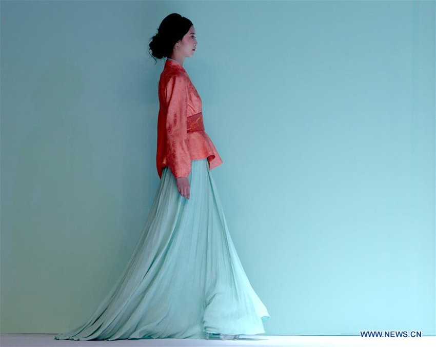 Ein Model präsentiert auf der China Modewoche eine Kreation, die von Chu Yan entworfen wurde (Foto vom 26. Oktober 2016).