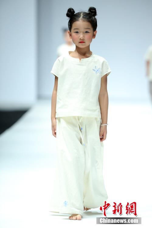 Ein Kindermodel präsentiert auf der China Modewoche eine Kreation, die von dem Desiger Lu Enhua entworfen wurde (Foto vom 26. Oktober 2016).