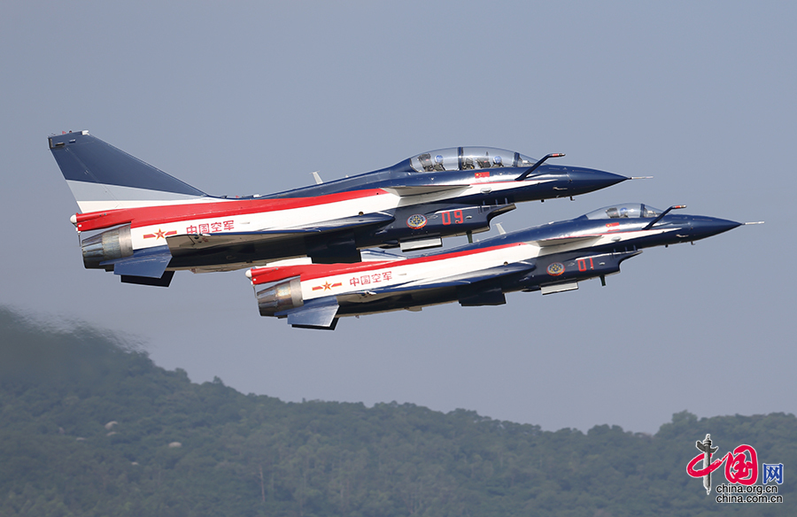 Die chinesische Kunstflugstaffel „Bayi“ bringt dem Publikum nach wie vor eine ausgezeichnete Aufführung.