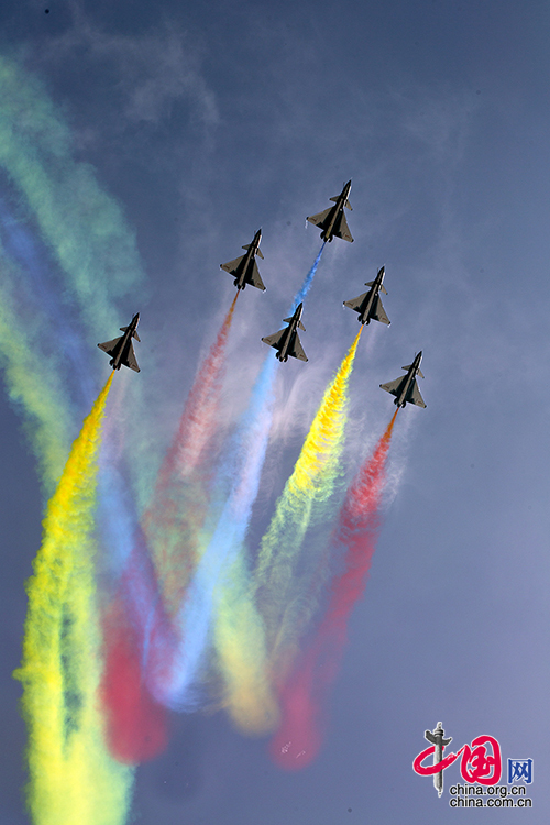 Die chinesische Kunstflugstaffel „Bayi“ bringt dem Publikum nach wie vor eine ausgezeichnete Aufführung.