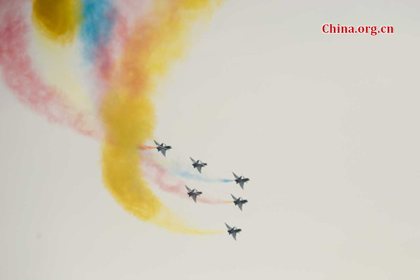 Das Kunstflugteam Bayi der Luftwaffe der Volksbefreiungsarmee gibt auf der 11. Airshow China in Zhuhai eine Vorführung (Foto vom 1. November 2016).