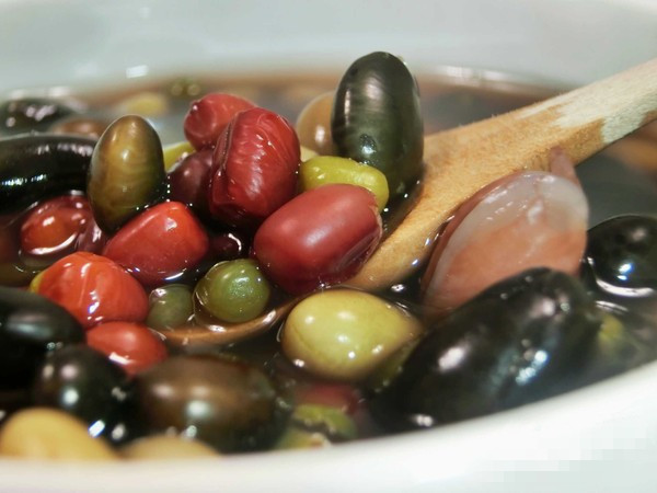 2 Die Bohnen vor dem Kochen 20 Minuten lang in Wasser einlegen, damit sie leichter zubereitet werden können (bei Zeitmangel können die Bohnen auch direkt gekocht werden, dazu die Funktion „Suppe-Kochen“ am Reiskochers einschalten).
