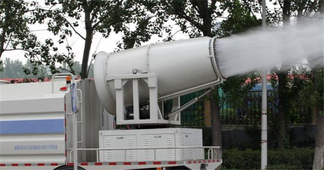 Die Nebelkanone ist noch nicht sehr bekannt, doch sie gewinnt langsam an Beliebtheit. Sie ist auf einem Lastwagen installiert und versprüht Wassernebel.