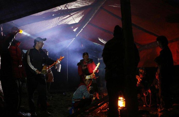 Nach dem Abendessen spielen die Dorfbewohner Musik und genießen ihre Freizeit.