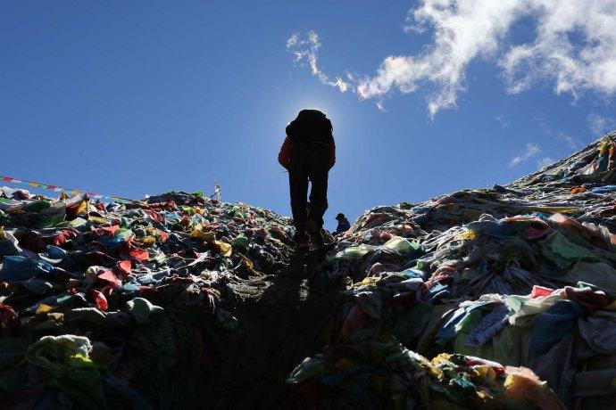 Kangjin Wangxue klettert über den Duokela-Pass. Der 17-Jährige nimmt zum ersten Mal an der Veranstaltung teil.