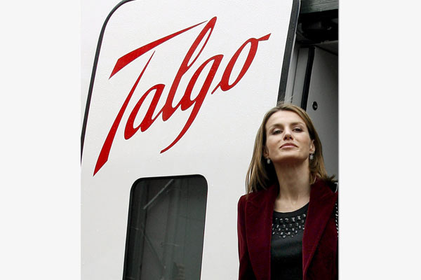 Bild: Bei der Transporttechnologie-Messe "InnoTrans 2010" in Berlin lässt sich die spanische Kronprinzessin Letizia vor dem spanischen Passagierzug „Talgo“ ablichten.
