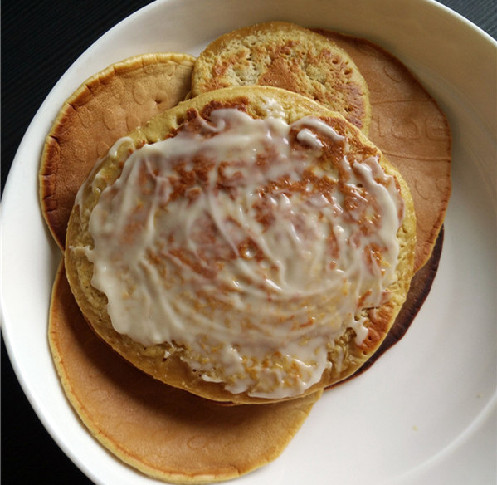8 Den gebackenen Kuchen herausheben und Salatsoße darauf geben;