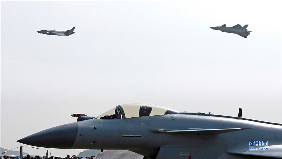 Bei der 11. Air-Show China erschienen die Kampfflugzeuge J-20 und J-10B zusammen vor dem Publikum.