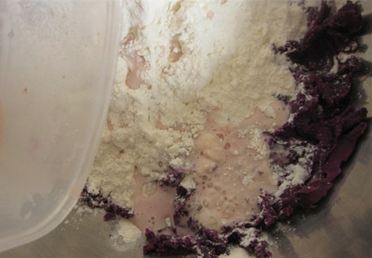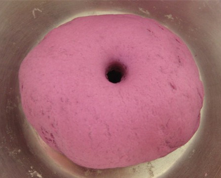 250 Gr. Mehl, 200 Gr. lila Süßkartoffeln, 20 ml Wasser, 3 Gr. Hefe
