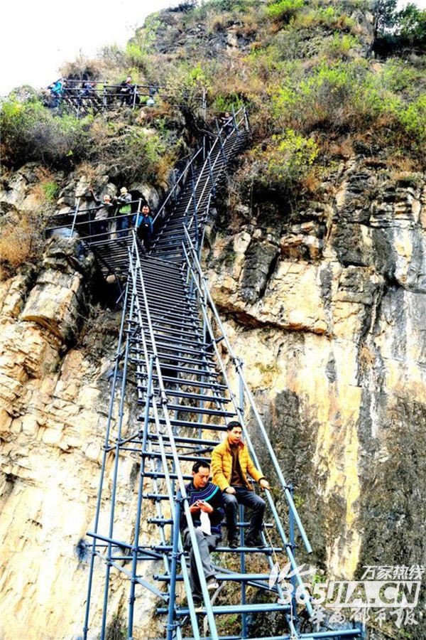 Eine Stahlleiter mit Handläufen wurde im November für eine Million Yuan (137.000 Euro) fertig gestellt, wobei sich die Regierung der Präfektur und die Provinz Zhaojue die Kosten gleichermaßen teilten.